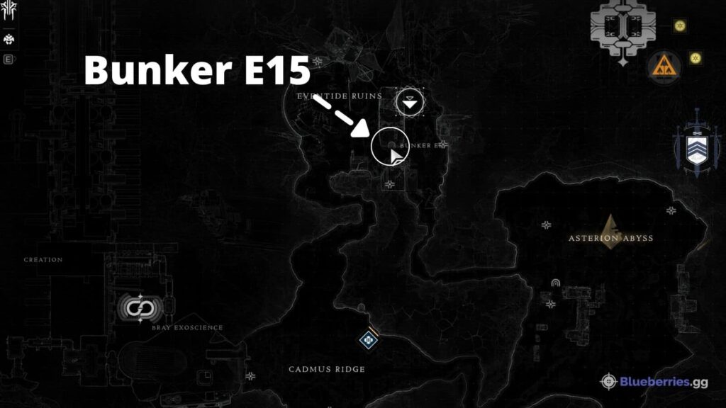 Lo primero es lo primero. El Sector Perdido de hoy está en Europa. Dirígete al punto de viaje rápido de Eventide Ruins . El búnker E15 estará a un tiro de piedra de donde aparecemos, pero su entrada está oculta.